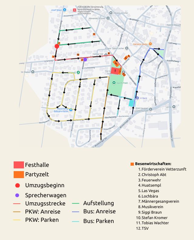 kleinen und großen Besenwirtschaften rund um Schule und Halle. Wo ihr was findet könnte ihr dem nachfolgenden Lageplan entnehmen